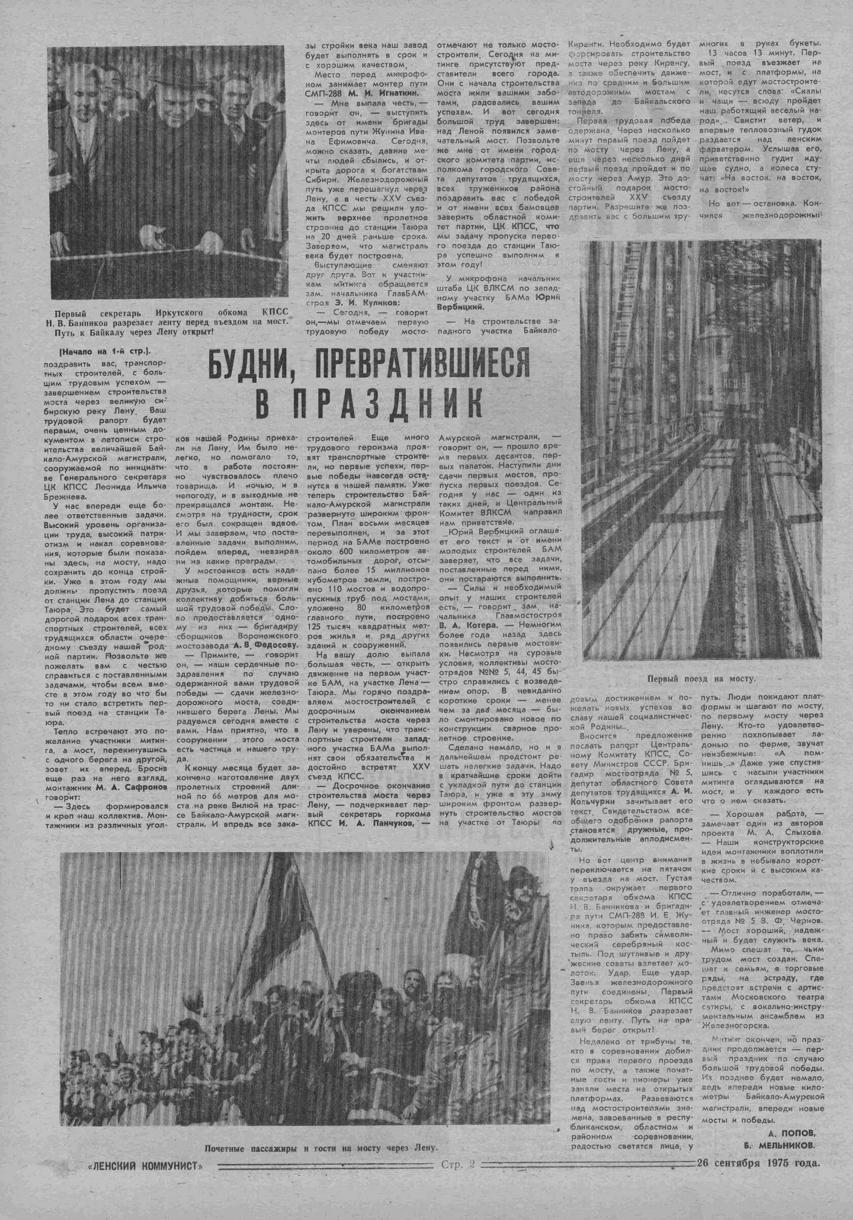 Встреча первого поезда на Ленском мосту. Фот. Э. Д. Брюханенко