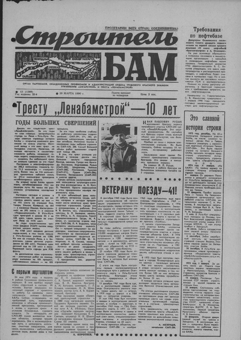 Строитель БАМ. 1990. 29 марта (№ 13)