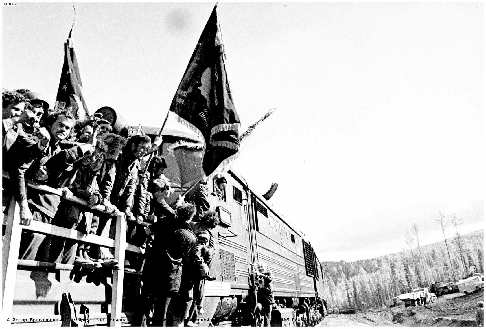 Рельсы пришли к реке Лена, у реки митинг. Фот. Э. Д. Брюханенко