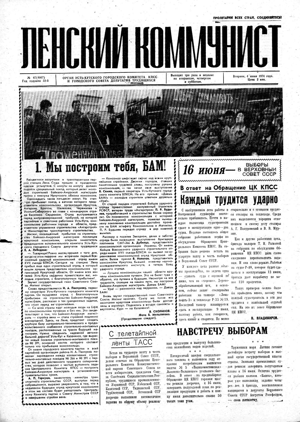 Ленский коммунист. 1974. 4 июня (№ 67)