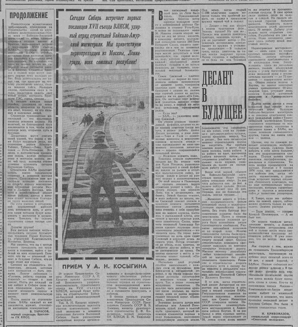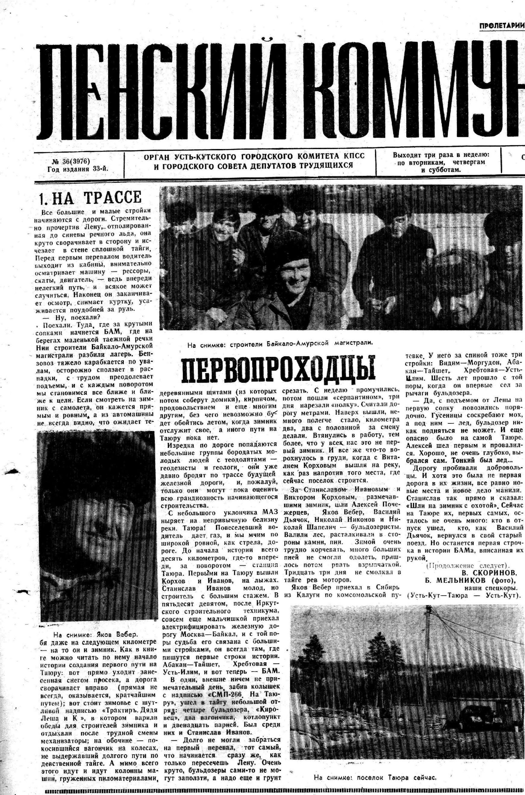 2 мая 1974 года устькутяне встречали первый отряд строителей-посланцев XVII съезда ВЛКСМ. Штаб Западного участка магистрали расположился в городе. Здесь же обосновались тресты «Ленабамстрой», «Запбамстроймеханизация», «Мостострой-9» несколько строительных поездов и механизированных колонн, которые стали основными застройщиками города.
