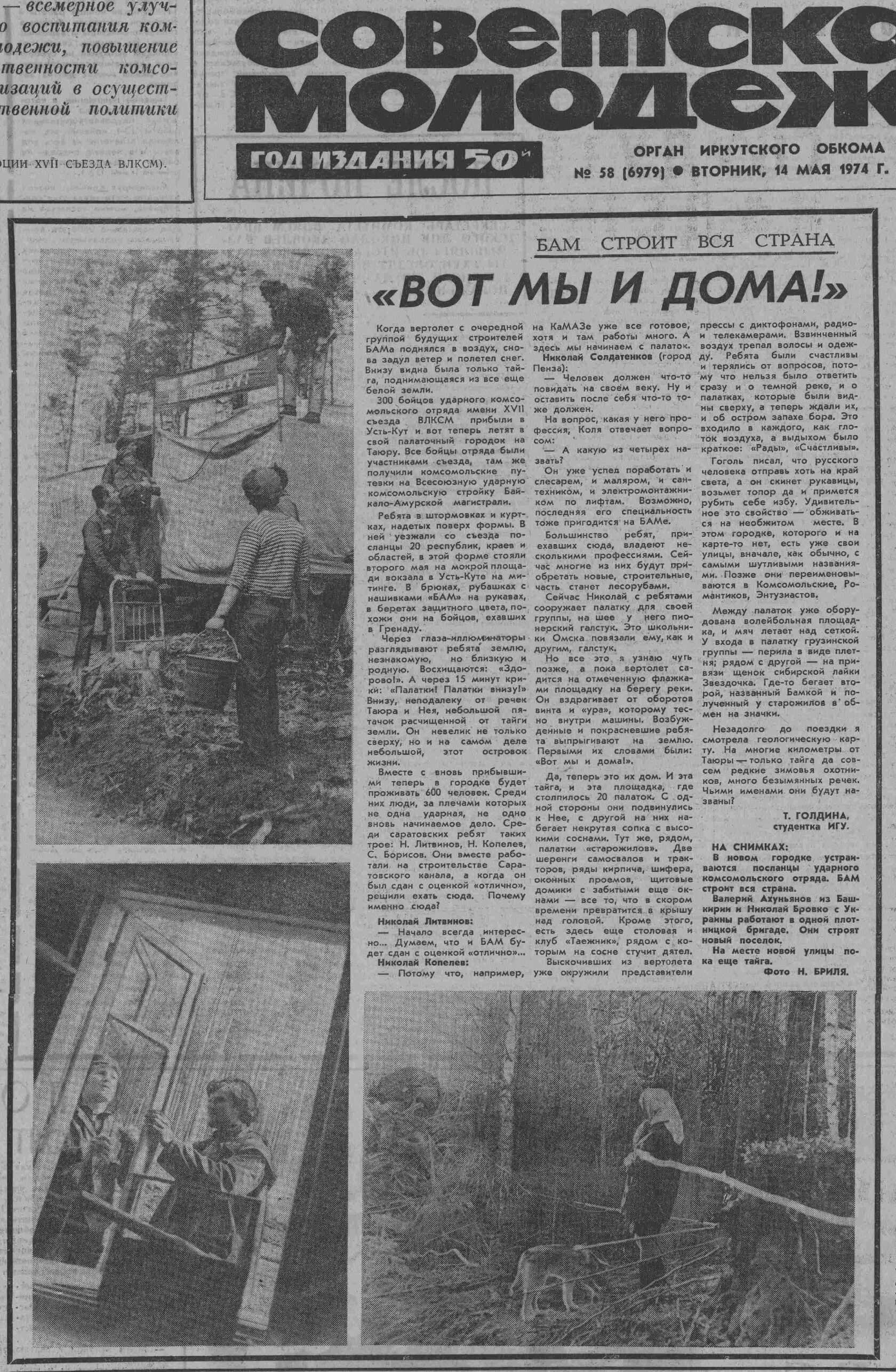 Советская молодежь. 1974. 14 мая (№ 58)