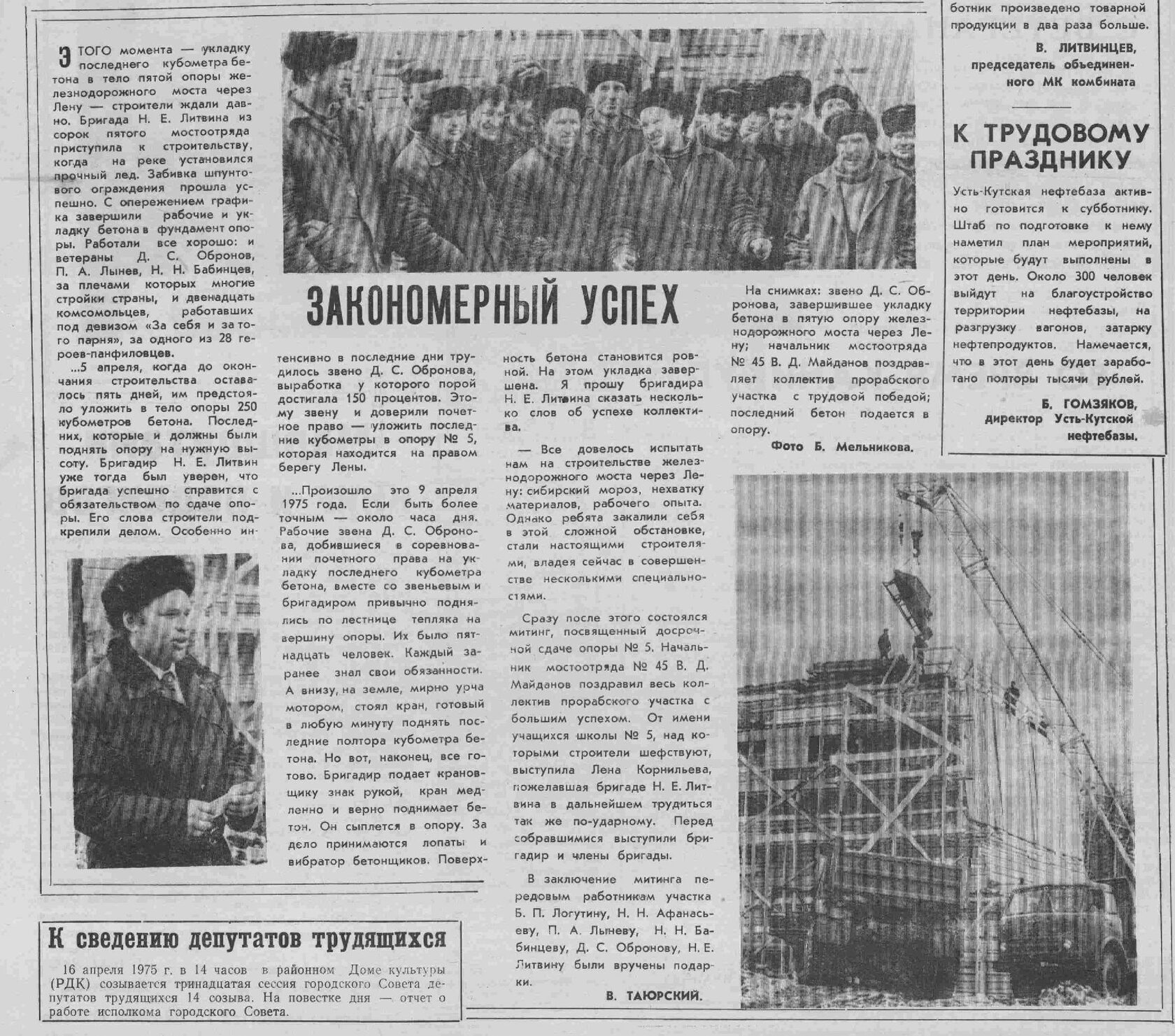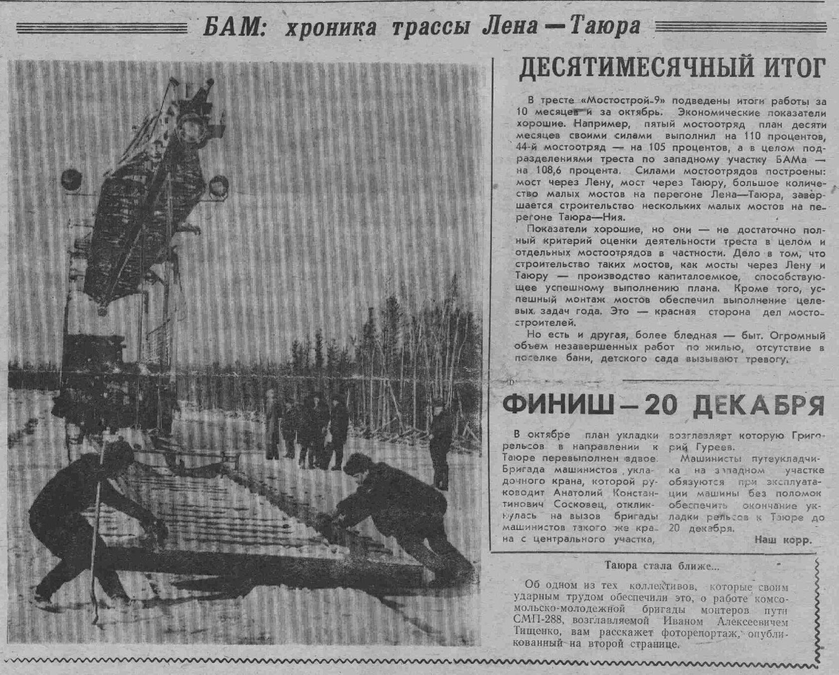 Тайшет - Лена, строительство и пуск. Фот. Э. Д. Брюханенко