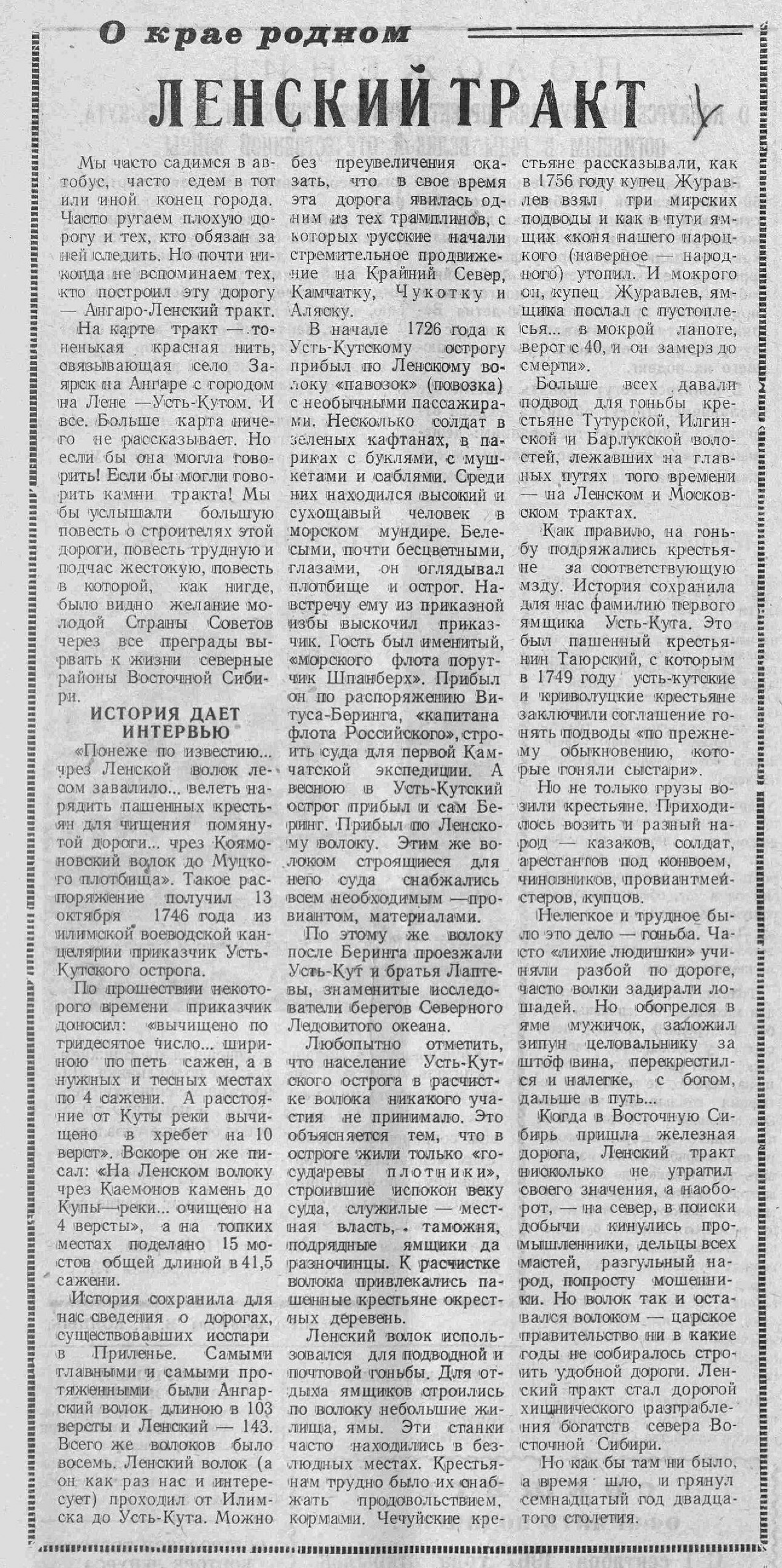 В верхнем Приленье перемещение грузов и людей осуществлялось ямскими и междудворными перевозками. Гужевые перевозки не скоро уступили место новым видам транспорта. На Лене они ещё долго сначала сосуществовали и даже соперничали в период навигации с пароходами, оставаясь монопольным видом в зимнее время года. И только с прокладкой Ангаро-Ленского тракта в 20-х годах XX века, когда началась вторая жизнь Ленского волока, и с приходом поездов, ямщик-извозчик со своей крестьянской лошадкой постепенно сошли со сцены истории, оставив после себя, тем не менее, как раз те направления, по которым помчались-поехали неведомые им чудеса новой эпохи.