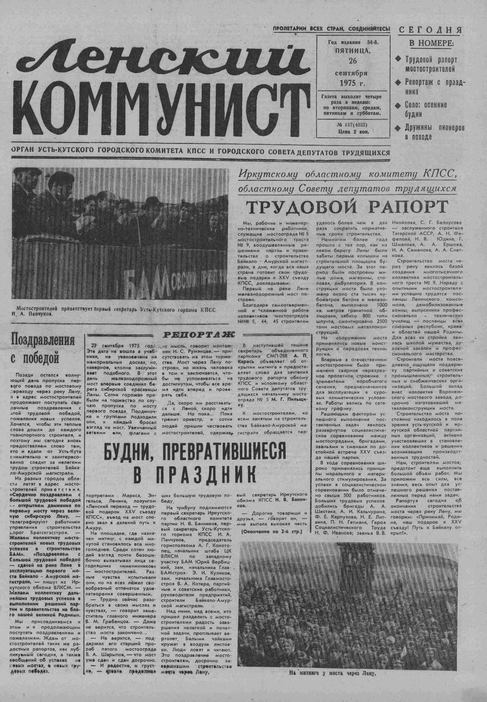 Ленский коммунист. 1975. 26 сент. (№ 137)